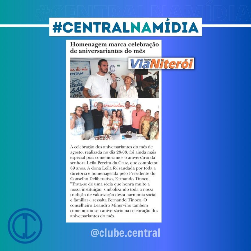 O Jornal Via Niterói deste mês trouxe como destaque o Festival Internacional Rio Tango, que será realizado dia 24 de setembro no Salão Nobre do Clube Central.