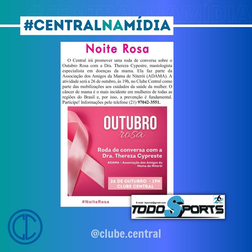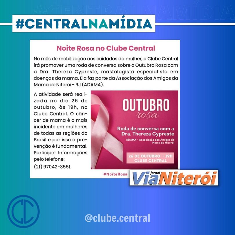 A colunista Denize Garcia publicou sobre a Noite Rosa do Clube Central no jornal Folha de Niterói…