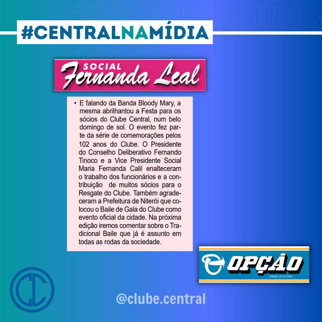 As comemorações do aniversário de 102 anos do Clube Central foram pauta na coluna social de Fernanda Leal @fernandadoliveiraleal, no jornal Opção…