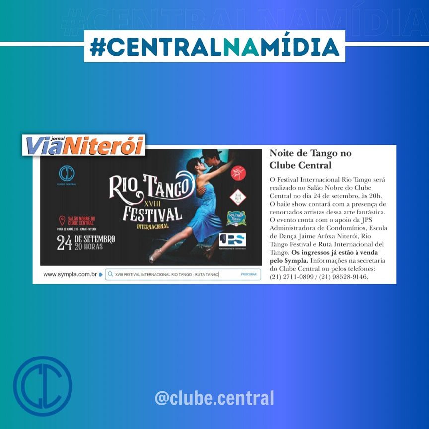 O Jornal Via Niterói deste mês trouxe como destaque o Festival Internacional Rio Tango, que será realizado dia 24 de setembro no Salão Nobre do Clube Central.