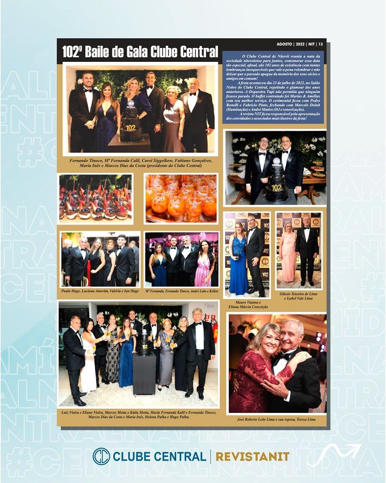 A edição de agosto da Revista Nit (@revista.nit) fez uma cobertura especial dos 102 anos do Clube Central.